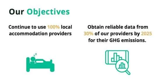Thanks to the almost exclusive all-inclusive trips we offer, we concluded that we could accurately measure the emissions from each trip or activity from 2019. To get a complete picture of the emissions, we collected data from the following activities: